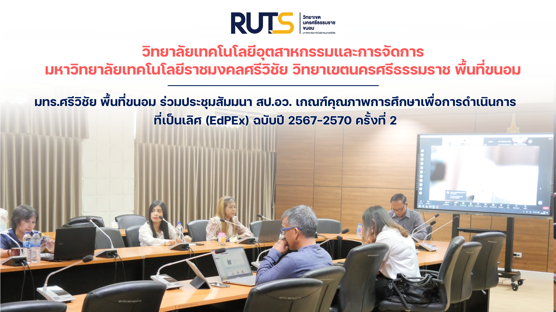 อาจารย์ทวีศักดิ์ ศรีภูงา ผู้อำนวยการวิทยาลัยเทคโนโลยีอุตสาหกรรมและการจัดการ พร้อมด้วย คณะผู้บริหาร คณะกรรมการแผนกงานประกันคุณภาพการศึกษา ฝ่ายวิชาการและวิจัย เข้าร่วมโครงการประชุมสัมมนา เรื่อง “เกณฑ์คุณภาพการศึกษาเพื่อการดำเนินการที่เป็นเลิศ (EdPEx) ฉบับปี 2567-2570” ครั้งที่ 2 หัวข้อ หมวดที่ 1 และผลลัพธ์ที่เกี่ยวข้อง จัดโดย สำนักงานปลัดกระทรวงการอุดมศึกษา วิทยาศาสตร์ วิจัยและนวัตกรรม (สป.อว.) เพื่อให้ผู้บริหารและบุคลากรของสถาบันอุดมศึกษาที่มีความมุ่งมั่นตั้งใจที่จะนำเกณฑ์ EdPEx ไปใช้เป็นแนวทางในการบริหารองค์กรสู่ความเป็นเลิศ ได้มีความรู้ ความเข้าใจ สามารถประเมินตนเองได้ โดยจะได้รับความรู้ตั้งแต่การจัดทำโครงร่างองค์กร (Organization Profile) การปรับปรุงพัฒนากระบวนการและผลลัพธ์ โดยคำนึงถึงภาพโดยรวมขององค์กร ในการบริหารและดำเนินงานในเรื่องสำคัญ ผ่านระบบออนไลน์ เมื่อวันที่ 8 กุมภาพันธ์ 2567 (ที่ผ่านมา)