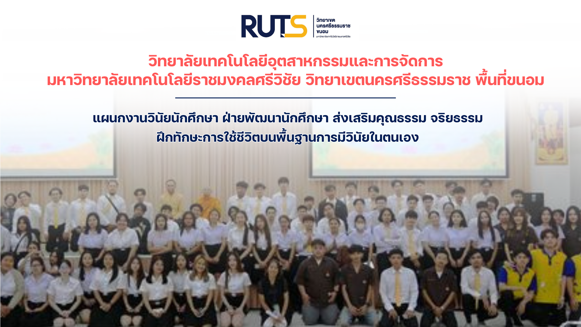 วันที่ 13 กุมภาพันธ์ 2567 อาจารย์ทวีศักดิ์ ศรีภูงา ผู้อำนวยการวิทยาลัยเทคโนโลยีอุตสาหกรรมและการจัดการ มทร.ศรีวิชัย พื้นที่ขนอม เป็นประธานในการเปิดโครงการเสริมสร้างคุณธรรมจริยธรรม ระเบียบวิยนัยนักศึกษา ประจำปีงบประมาณ 2567 จัดโดย ฝ่ายพัฒนานักศึกษา ณ ห้องประชุมรองศาสตราจารย์ประชีพ ชูพันธ์ อาคารเฉลิมพระเกียรติ