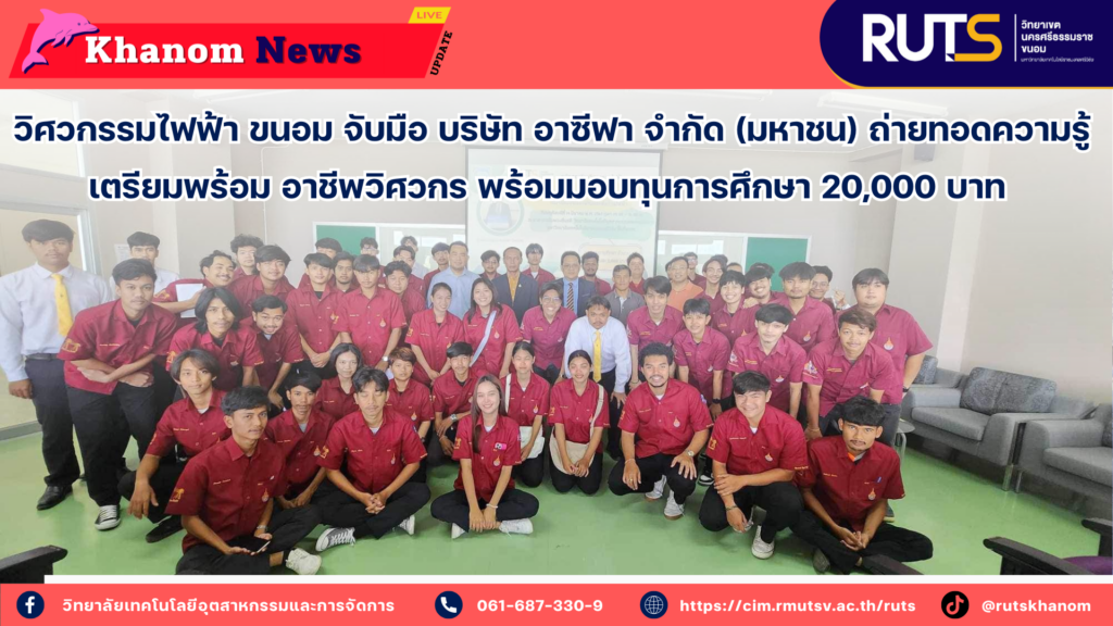 สาขาวิศวกรรม หลักสูตรวิชาวิศวกรรมไฟฟ้า วิทยาลัยเทคโนโลย … อ่านเพิ่มเติม วิศวกรรมไฟฟ้า ขนอม จับมือ บริษัท อาซีฟา จํากัด (มหาชน) ถ่ายทอดความรู้เตรียมพร้อม อาชีพวิศวกร พร้อมมอบทุนการศึกษา 20,000 บาท