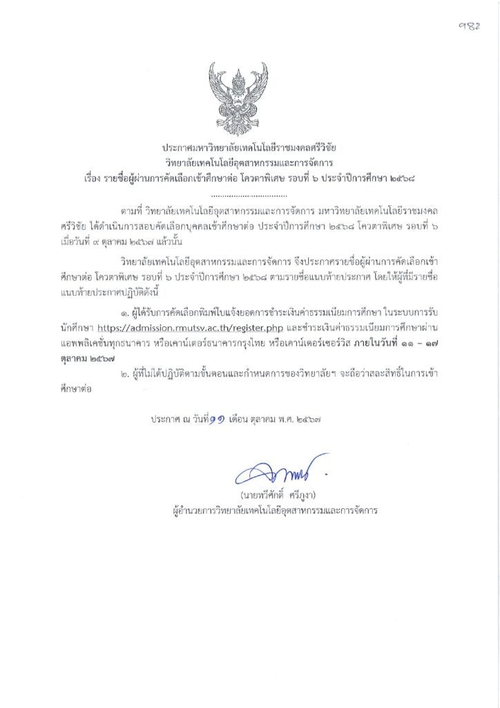 มหาวิทยาลัยและวิทยาเขต วิทยาลัยเทคโนโลยีอุตสาหกรรมและการจัดการ(ขนอม)ประกาศผู้ชนะการเสนอราคาซื้อครุภัณฑ์ชุดปฏิบัติการระบบควบคุมวิศวกรรม จำนวน 1 ชุด ด้วยวิธีประกวดราคาอิเล็กทรอนิกส์ (e-bidding)22 ตุลาคม 202522 ตุลาคม 2025