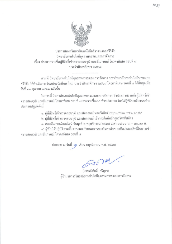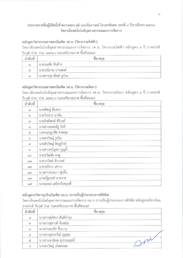 – สาขาวิศวกรรม เพื่อทำการนัดสอบสัมภาษณ์