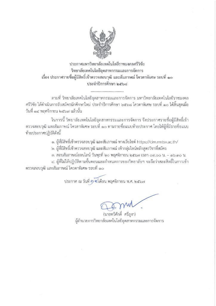 มหาวิทยาลัยและวิทยาเขต วิทยาลัยเทคโนโลยีอุตสาหกรรมและการจัดการ(ขนอม)ประกาศผู้ชนะการเสนอราคาซื้อครุภัณฑ์ชุดปฏิบัติการระบบควบคุมวิศวกรรม จำนวน 1 ชุด ด้วยวิธีประกวดราคาอิเล็กทรอนิกส์ (e-bidding)22 ตุลาคม 202522 ตุลาคม 2025