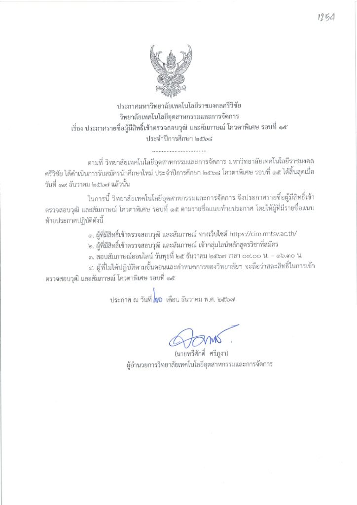 มหาวิทยาลัยและวิทยาเขต วิทยาลัยเทคโนโลยีอุตสาหกรรมและการจัดการ(ขนอม)ประกาศผู้ชนะการเสนอราคาซื้อครุภัณฑ์ชุดปฏิบัติการระบบควบคุมวิศวกรรม จำนวน 1 ชุด ด้วยวิธีประกวดราคาอิเล็กทรอนิกส์ (e-bidding)22 ตุลาคม 202522 ตุลาคม 2025