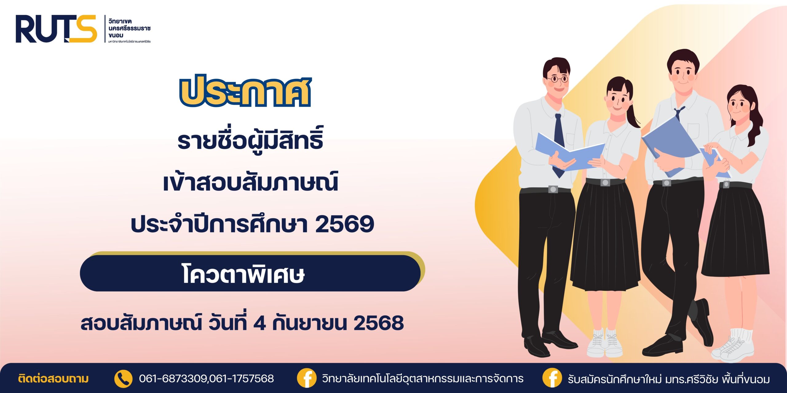 ประกาศรายชื่อผู้มีสิทธิ์เข้าตรวจสอบวุฒิ และสัมภาษณ์โควตาพิเศษ ประจำปีการศึกษา ๒๕๖๙