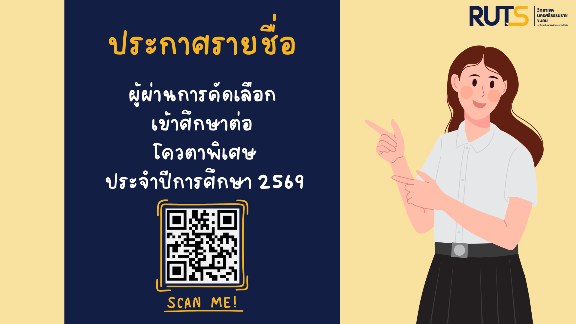 ข่าวสารความเคลื่อนไหว-กิจกรรม ประกาศ รายชื่อผู้ผ่านการคัดเลือกเข้าศึกษาต่อ โควตาพิเศษ ประจำปีการศึกษา 25692 ธันวาคม 2025