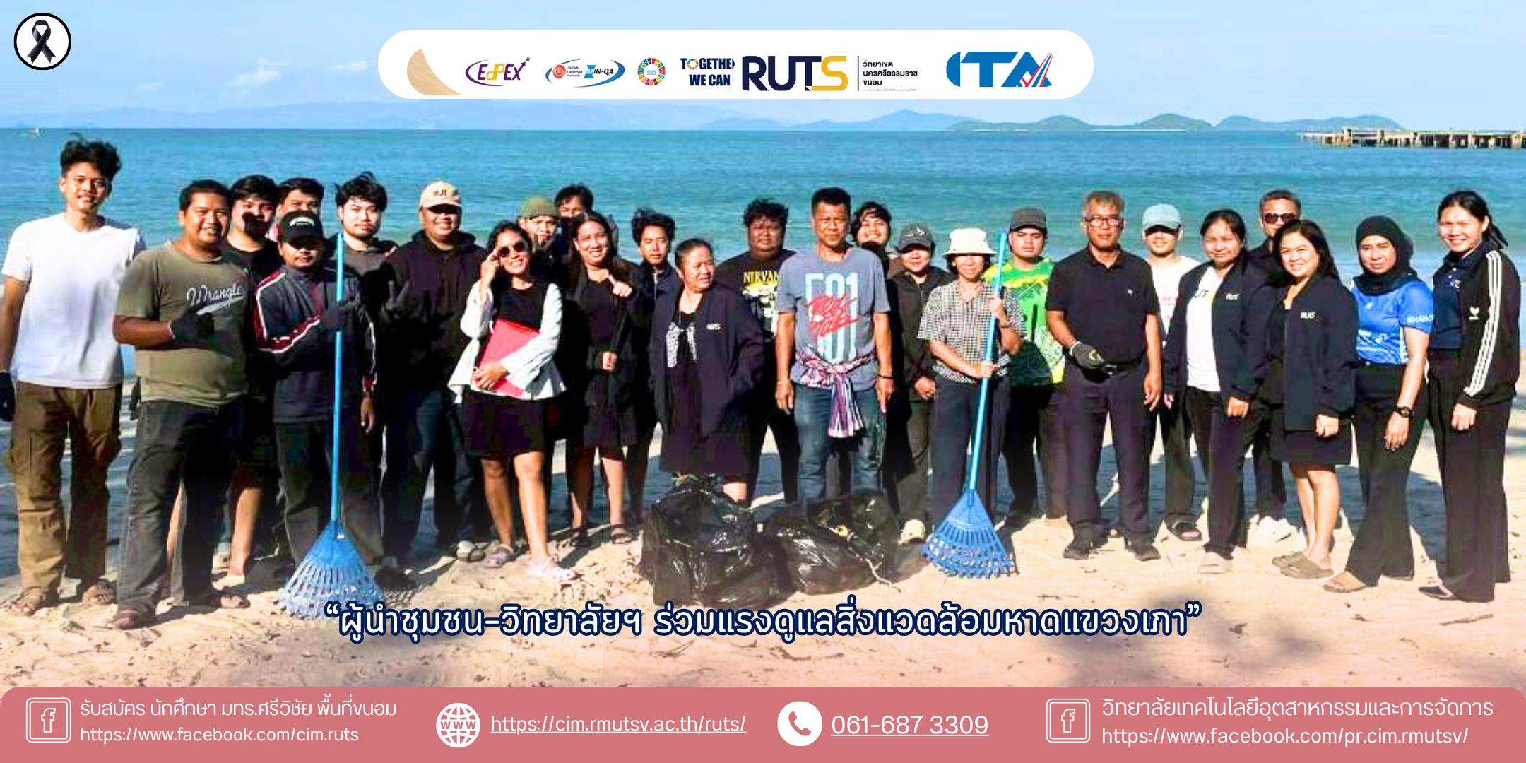 เมื่อวันที่ 6 กุมภาพันธ์ 2569 วิทยาลัยเทคโนโลยีอุตสาหกรรมและการจัดการ มหาวิทยาลัยเทคโนโลยีราชมงคลศรีวิชัย พื้นที่ขนอม นำโดยคณาจารย์ บุคลากร และนักศึกษา ร่วมกับผู้นำชุมชน ทำกิจกรรมเก็บขยะคืนความสะอาดให้หาดแขวงเภา ตำบลท้องเนียน อำเภอขนอม จังหวัดนครศรีธรรมราช เพื่อร่วมกันอนุรักษ์สิ่งแวดล้อม ส่งเสริมจิตสำนึกในการดูแลทรัพยากรธรรมชาติ และเสริมสร้างความร่วมมือระหว่างสถาบันการศึกษากับชุมชนท้องถิ่น