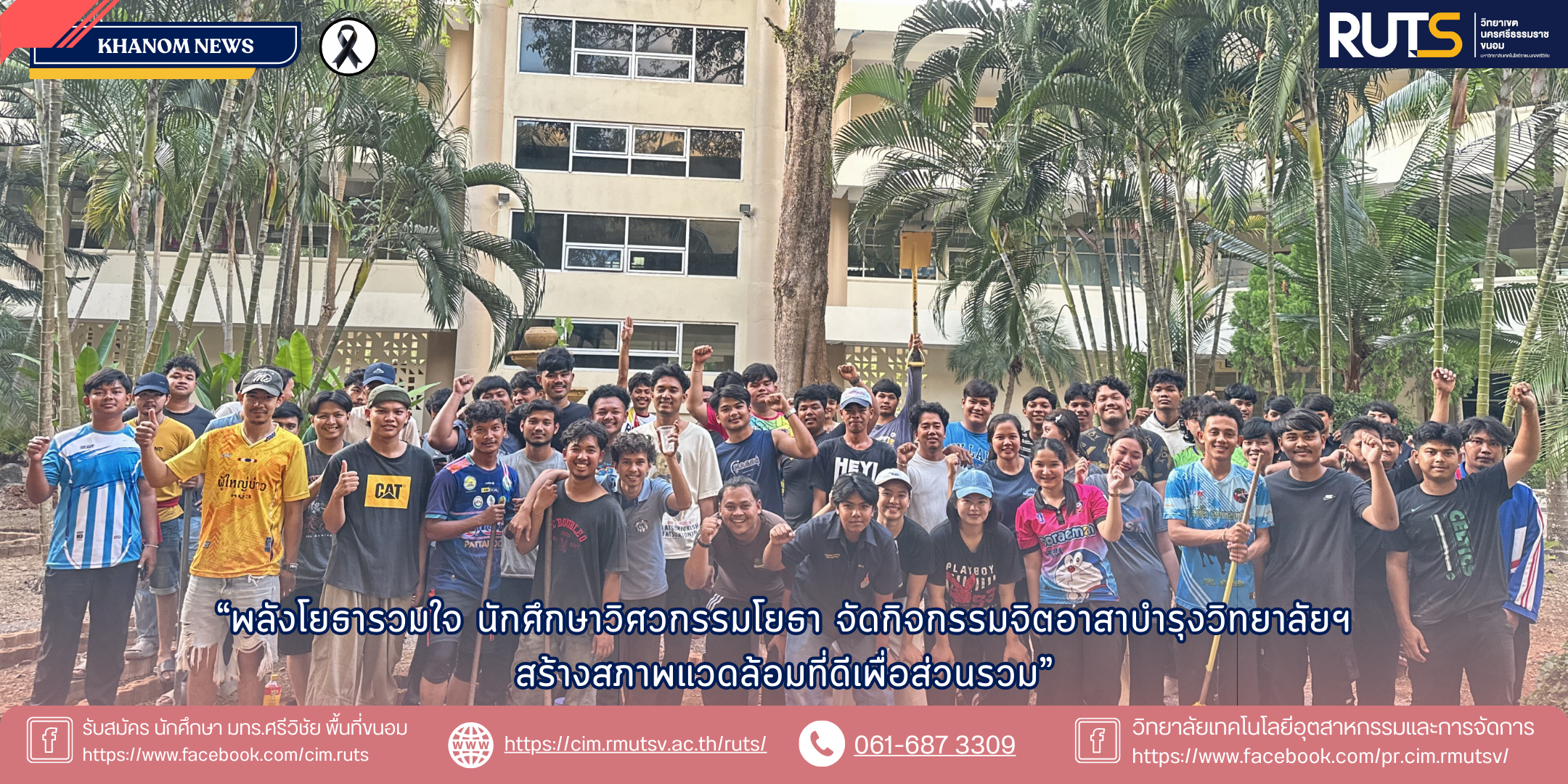 นักศึกษาหลักสูตรวิศวกรรมโยธา วิทยาลัยเทคโนโลยีอุตสาหกรรมและการจัดการ มหาวิทยาลัยเทคโนโลยีราชมงคลศรีวิชัย พื้นที่ขนอม ทุกชั้นปี ร่วมกันจัดกิจกรรมจิตอาสาเพื่อบำรุงรักษาและพัฒนาพื้นที่ภายในวิทยาลัยฯ โดยพร้อมเพรียงกัน ด้วยความมุ่งมั่นและสำนึกในความรับผิดชอบต่อส่วนรวม