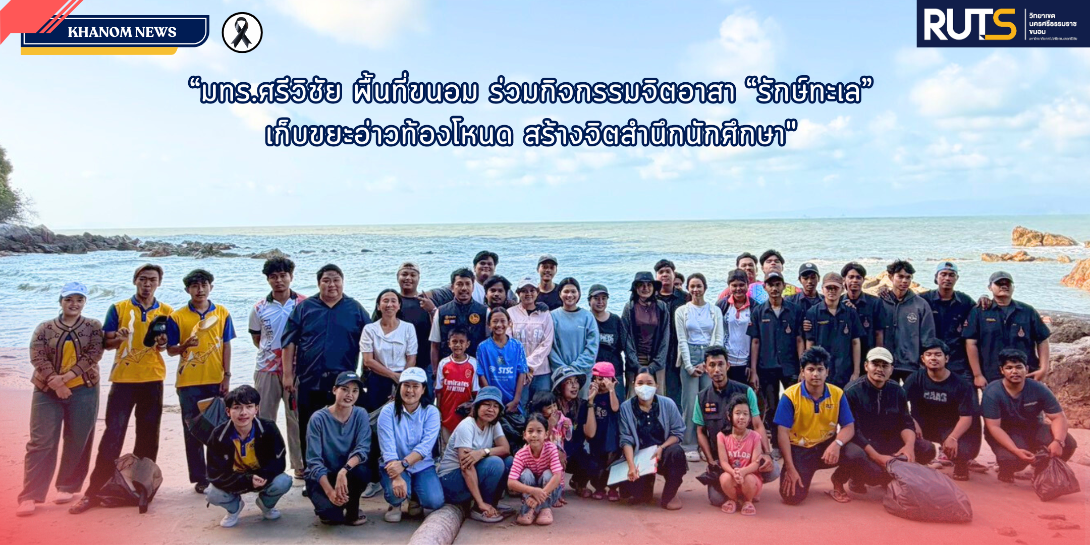 วันที่ 17 มีนาคม 2569 วิทยาลัยเทคโนโลยีอุตสาหกรรมและการจัดการ มหาวิทยาลัยเทคโนโลยีราชมงคลศรีวิชัย พื้นที่ขนอม จัดกิจกรรมจิตอาสา “ท่องเที่ยวและชุมชน รักษ์ทะเล” ณ บริเวณอ่าวท้องโหนด ตำบลท้องเนียน อำเภอขนอม จังหวัดนครศรีธรรมราช โดยมี ผู้ช่วยศาสตราจารย์ ดร.จิตติมา ชูพันธุ์ รองผู้อำนวยการฝ่ายพัฒนานักศึกษา เป็นผู้นำคณะนักศึกษาเข้าร่วมกิจกรรม ร่วมกับผู้นำท้องถิ่นและชุมชนในพื้นที่