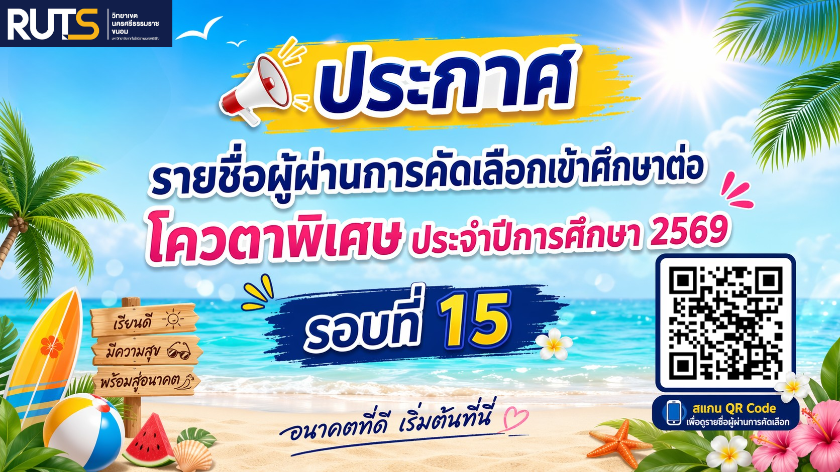 ข่าวประชาสัมพันธ์ ประกาศ รายชื่อผู้ผ่านการคัดเลือกเข้าศึกษาต่อ โควตาพิเศษ ประจำปีการศึกษา 256931 มีนาคม 202631 มีนาคม 2026