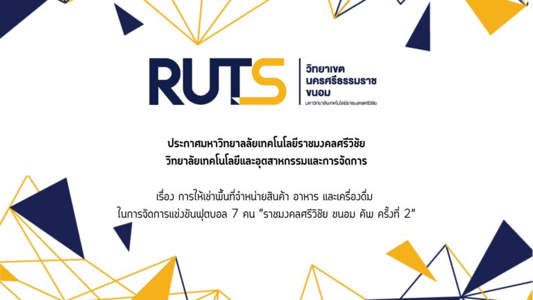 ข่าวประชาสัมพันธ์ ประกาศ เรื่อง การให้เช่าพื้นที่จำหน่ายสินค้า อาหาร และเครื่องดื่ม ในการจัดการแข่งขันฟุตบอล 7 คน “ราชมงคลศรีวิชัย ขนอม คัพ ครั้งที่ 2”14 กรกฎาคม 202515 กรกฎาคม 2025