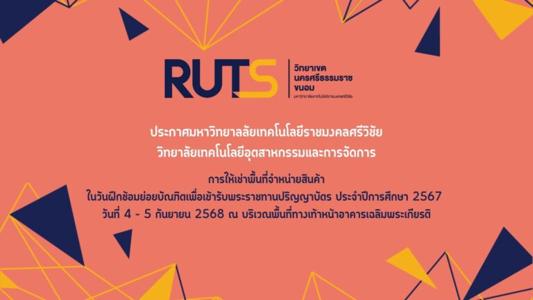 ข่าวประชาสัมพันธ์ ประกาศมหาวิทยาลัยเทคโนโลยีราชมงคลศรีวิชัย วิทยาลัยเทคโนโลยีอุตสาหกรรมและการจัดการ เรื่อง เปิดรับสมัครนักศึกษาใหม่ ระดับปริญญาตรี ภาคปกติ(โควตาพิเศษ) ประจำปีการศึกษา ๒๕๖๙8 สิงหาคม 20252 กันยายน 2025